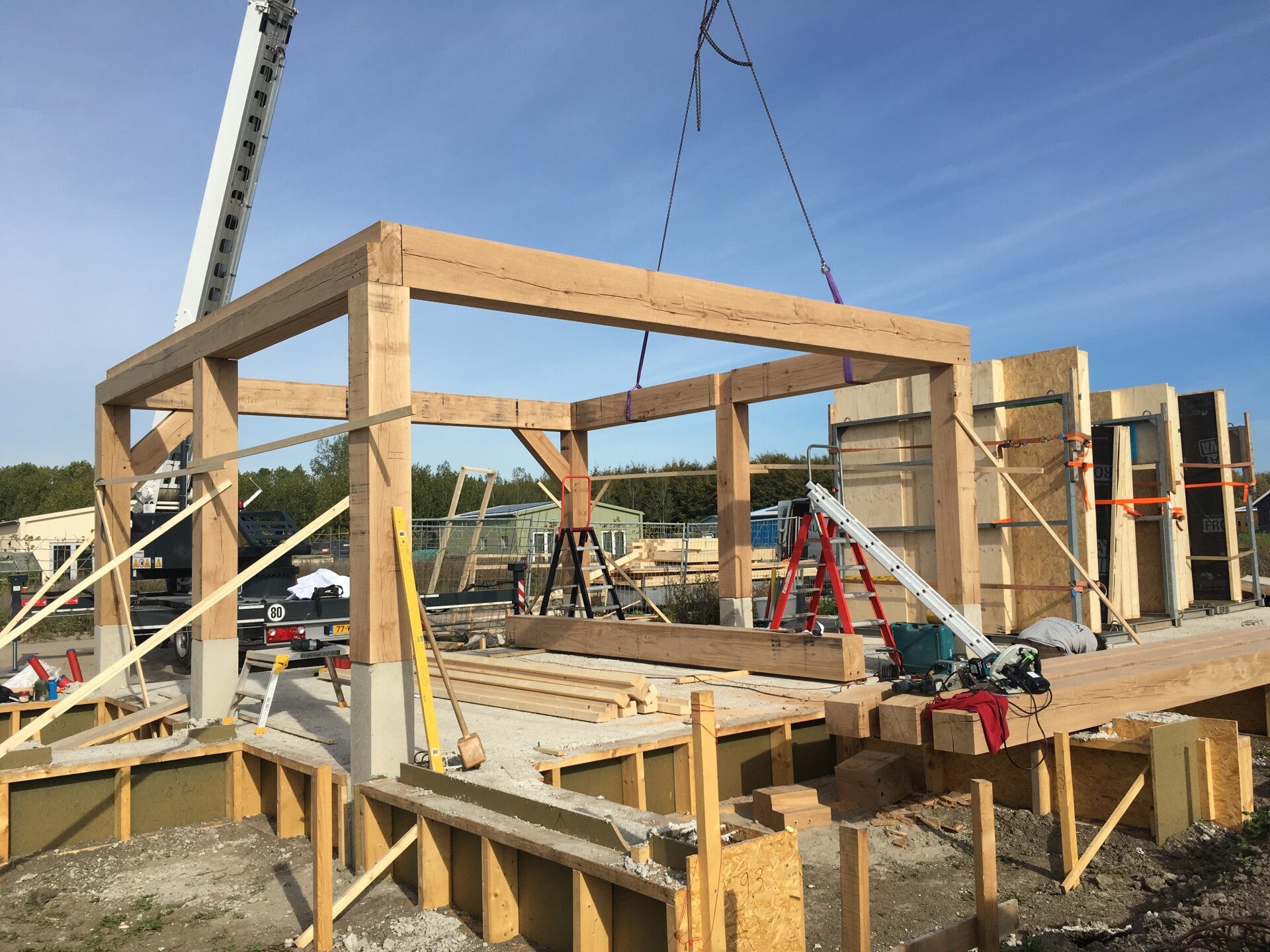 Meegewerkt aan de bouw van diverse eiken gebintconstructies, voor Lignum Houtbouw.